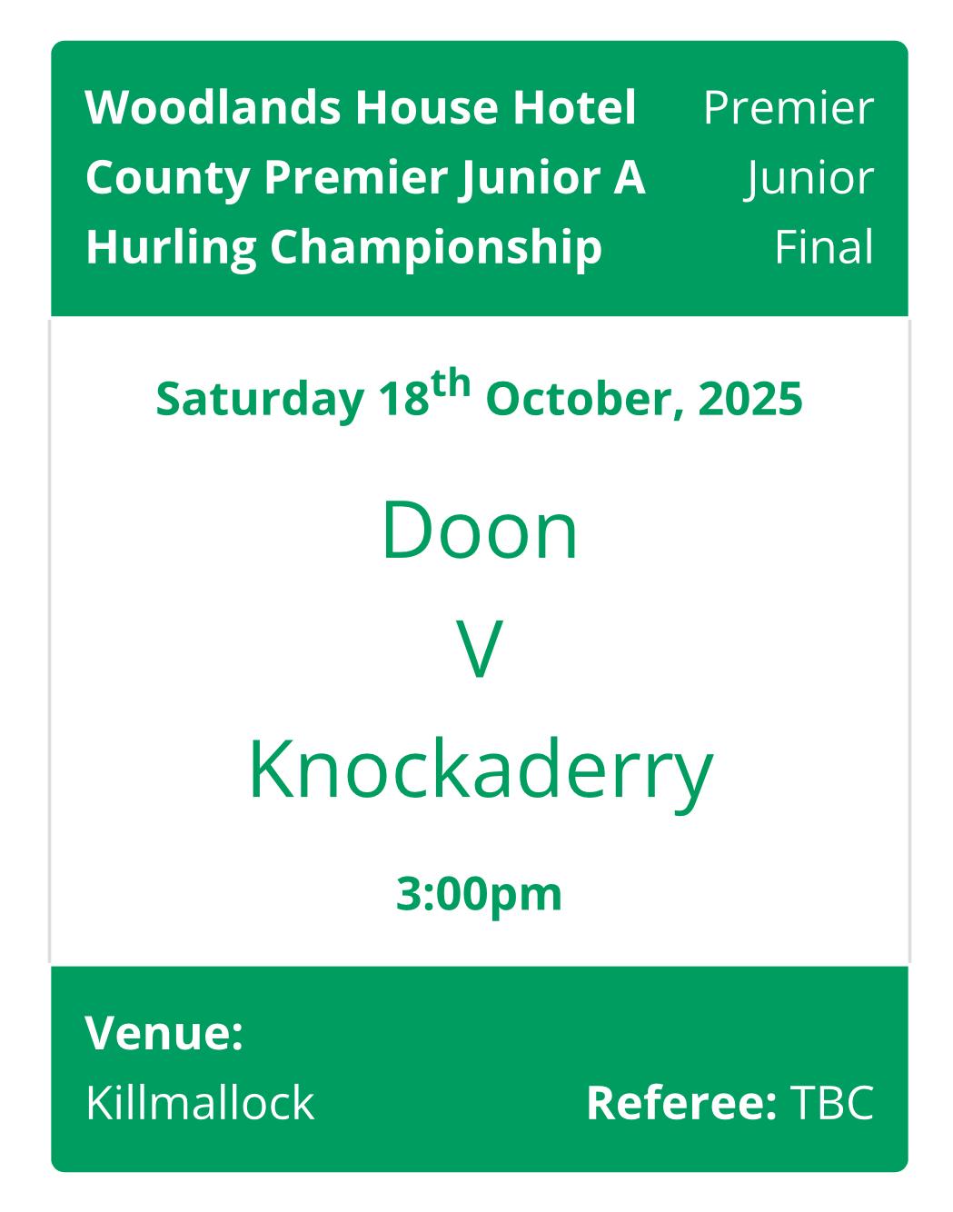 Email name/family text that you would like to appear on programme to secretary.knockaderry.limerick@gaa.ie
